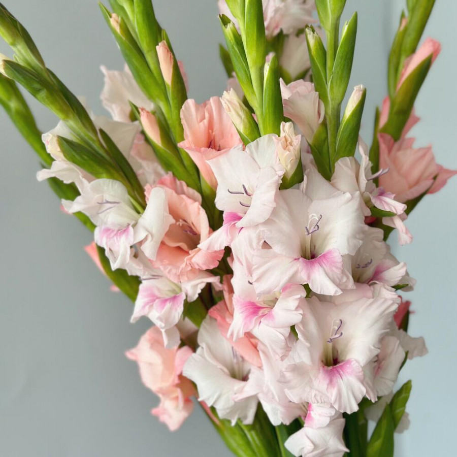 На фото букет из 19 розовых гладиолусов. В составе: гладиолус 19 шт, атласная лента 1 шт, . Все цветы свежие и ароматные, букет красиво оформлен и отлично подходит для подарка. Доступна доставка цветов или самовывоз.