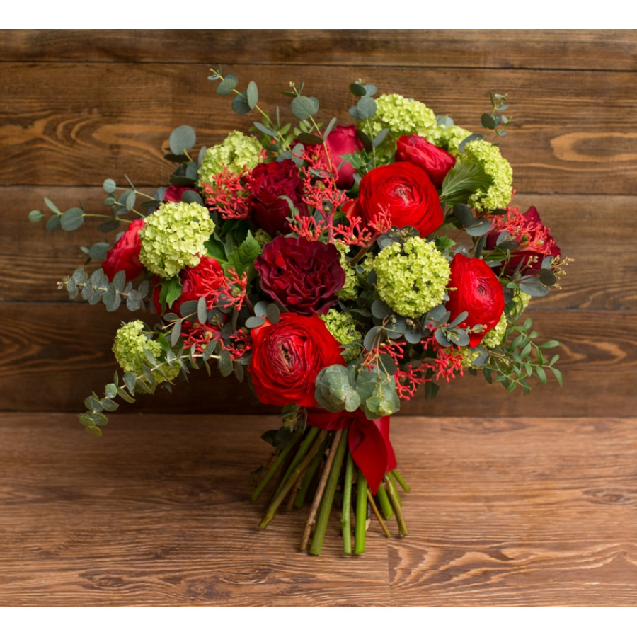 Хотите сделать сюрприз дорогому человеку, закажите именно этот букет. Веточки кудрявого вибурнума в сочетаниями с яркими и необычными соцветиями ранункулюса между семью пионовидными розами зададут превосходное, по-настоящему волшебное настроение на весь день. Свежайшие цветы с непревзойденным тонким ароматом, декорированные листочками эвкалипта и писташа приведут в восторг самых утонченных натур.