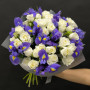 Букет из синих ириcов и белой кустовой розы в Балабаново